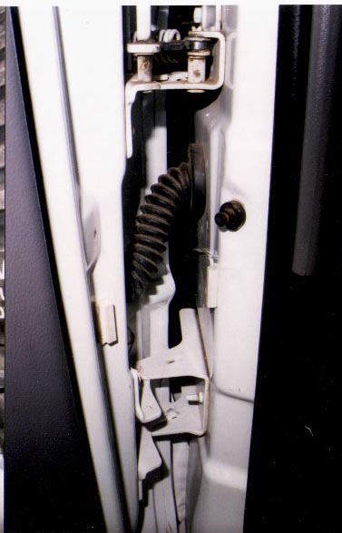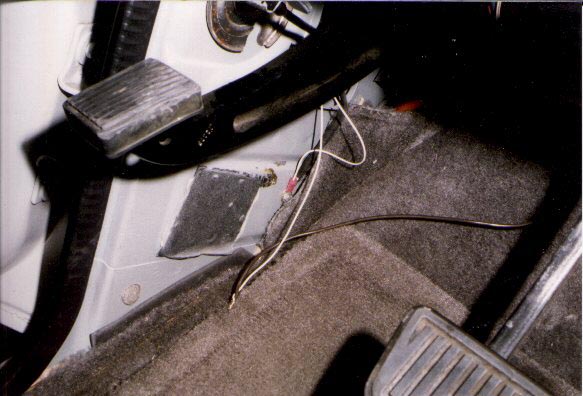 | Obviously the driver side, just behind the E-brake is an opening for the wiring harness, and a grommet that works well for CB antennas and Magnetic switch wires. |